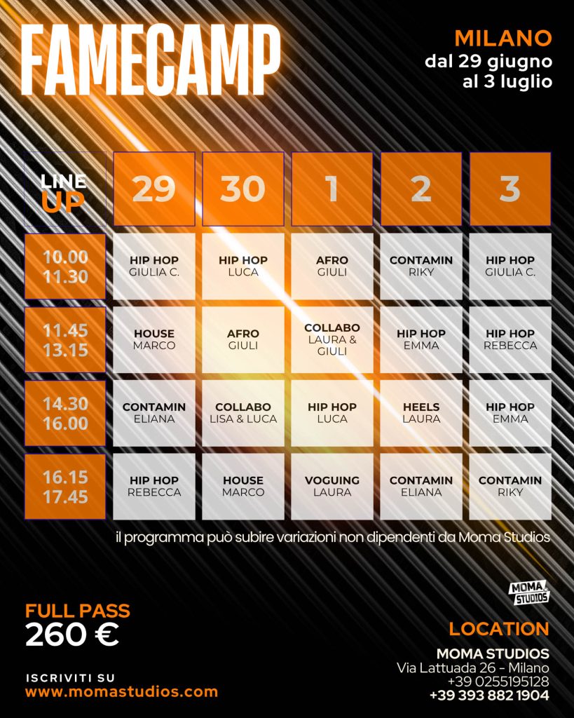 Se cerchi un’esperienza formativa intensa e completa nel mondo della danza, non puoi perdere FAME CAMP, il camp firmato Moma Studios Milano.